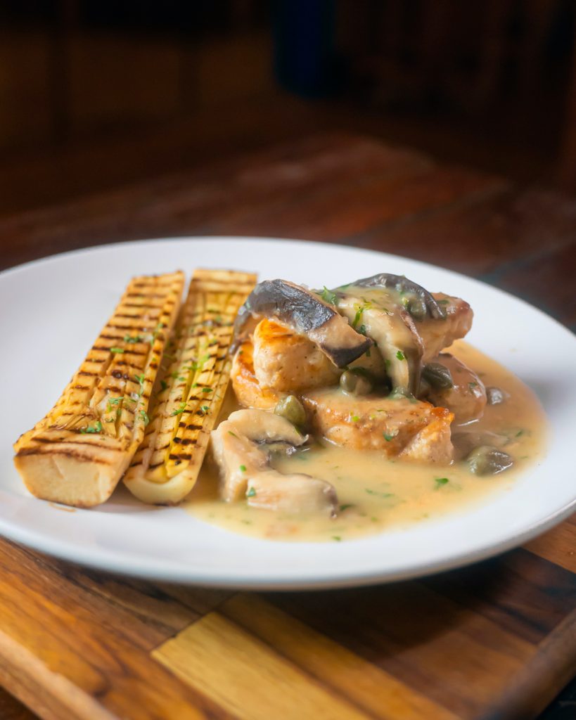 Quem prefere peixes pode optar pelo pintado ao azeite e alcaparra, grelhado com cogumelos da região e palmito certificado do Cerrado. Acompanha arroz, pirão e farofa da casa. Vale provar também a piraputanga corumbaense, o peixe mais abundante das bacias da região, servido sem espinhos e recheado com farofinha de moqueca. Leva ainda arroz, legumes assados e pirão da casa.