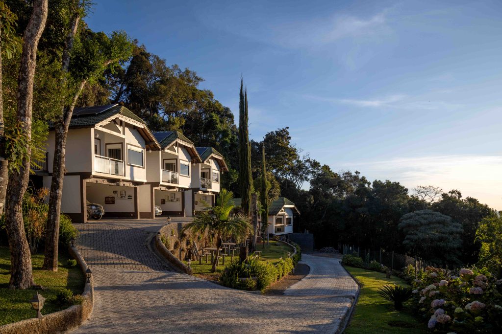 O café da manhã, servido com vista para o verde, valoriza produtos frescos e regionais. Outro diferencial é a presença de carregador para carro elétrico, item ainda pouco difundido em destinos de montanha e que responde a uma demanda crescente por infraestrutura mais atualizada.